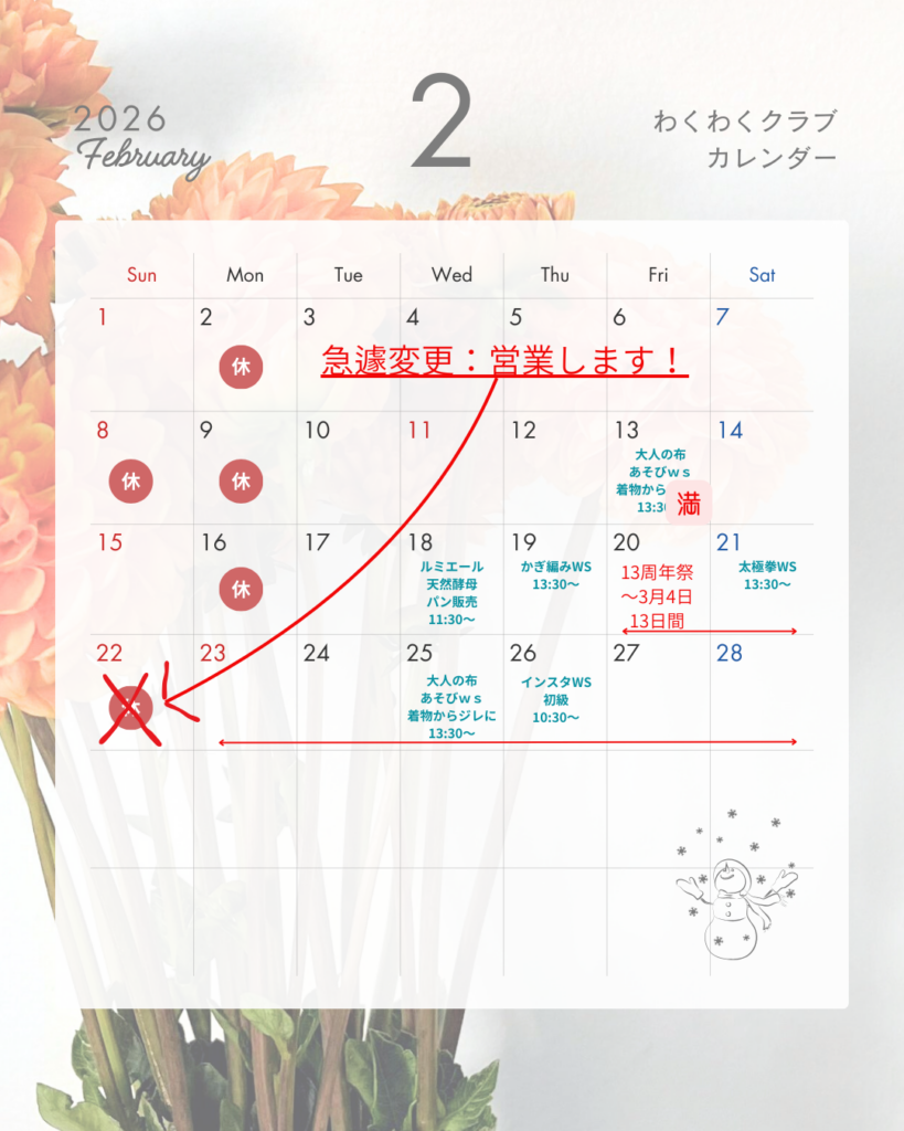 わくわくクラブ~2月スケジュール 2月 17, 2026 最終更新日時 : 2月 17, 2026 nyu 2月のスケジュールを掲載します 各日にちの参加ご希望の方は 公式LINEよりお申込みください Facebook